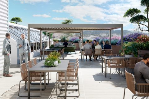 Le rooftop offre une vue imprenable sur Genève, ajoutant une dimension supplémentaire à votre expérience de travail.